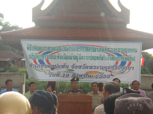 ![]() พิธีปล่อยแถวตามแผนระดมกวาดล้างยาเสพติด และอาชญากรรมปฏิบัติการ (บางปะหันเมืองน่าอยู่ มีความปลอกภัยในชีวิตและทรัพย์สิน) สินธิกำลังโดย เจ้าหน้าที่ฝ่ายปกครอง ,หัวหน้าส่วนราชการ,องค์การส่วนท้องถิ่น, เจ้าหน้าที่ตำรวจ สภ.บางปะหัน ,สภ.บ้านขล้อ รวมกว่า 300 นาย เมื่อวันที่ 19 สิงหาคม 2553 เวลา 17.00 น. ณ หน้าที่ว่าการอำเภอบางปะหัน |