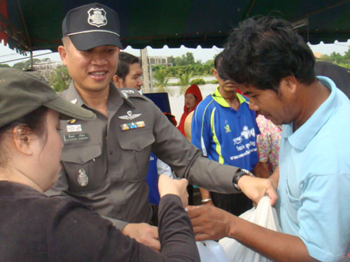 รับมอบถุงยังชีพ จาก พล.ต.ท.จักรทิพย์ ดร.บุษบา ชันจินดา